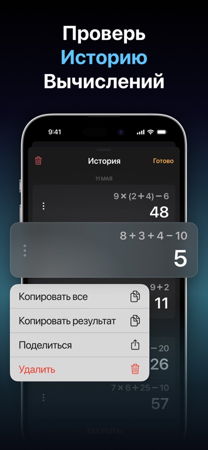 • Калькулятор с историей. Сохраняйте и редактируйте свои прошлые расчеты, чтобы использовать их повторно в любое время.
