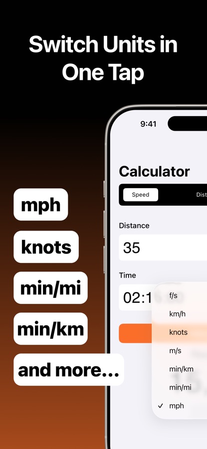 Versatile Calculations: Easily compute speed, distance, or time with just a few taps.