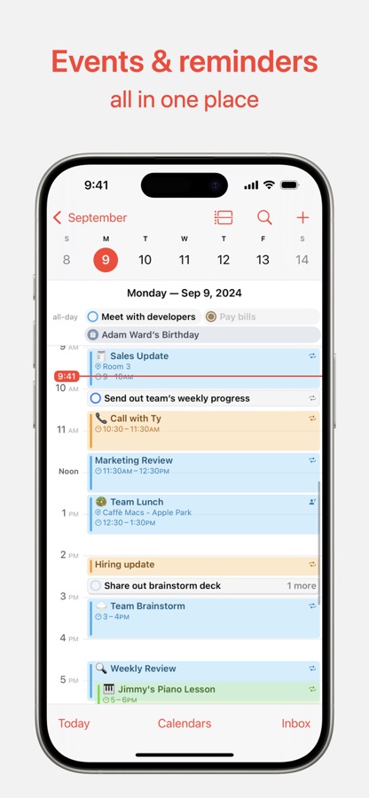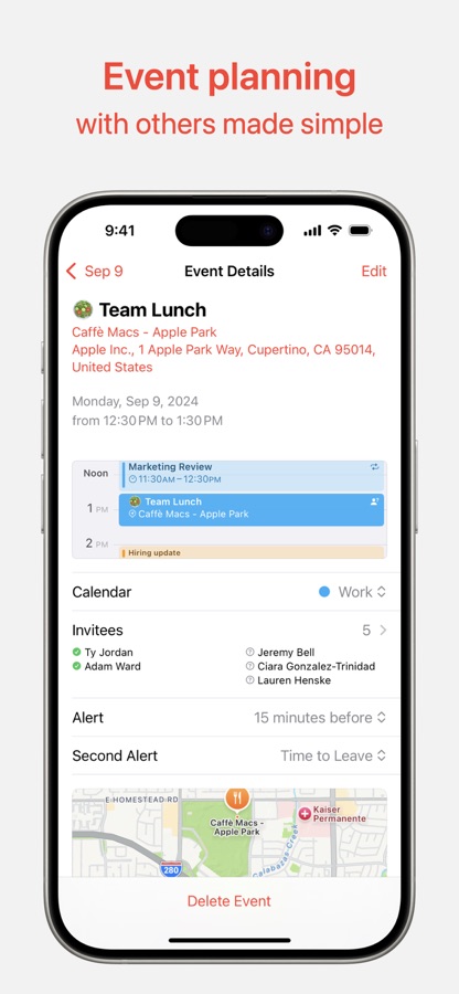 Создавайте и редактируйте события, мероприятия и встречи. Добавьте напоминание о предстоящем событии, место или время уведомления о нем, ссылку на видеовызов для удобной связи, вложенные файлы, заметки и другой контент. Легко отправляйте и получайте приглашения на события в iCloud, Exchange и других учетных записях календарей.
