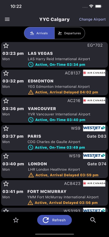 Flight arrivals and departures information for Calgary Airport (YYC)