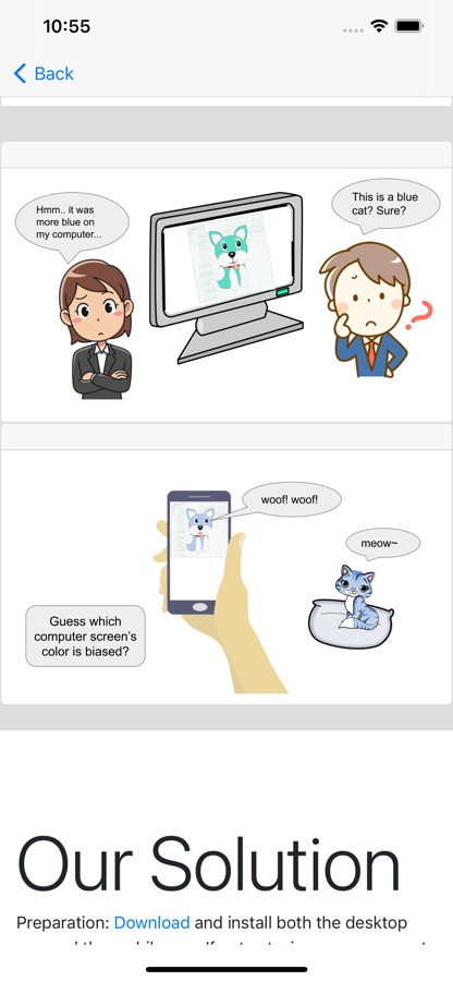 To use the app, first, you need a desktop app CalibCat Display. (CalibCat Display has its own other features; please check its page on your desktop app store for details.)