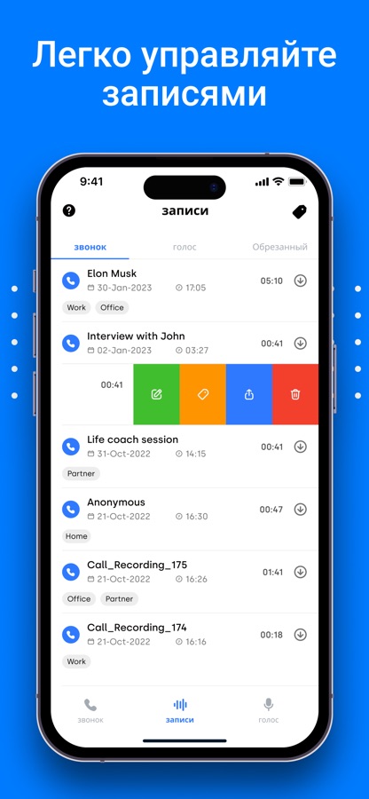 Call Recorder ◎ предлагает все необходимое для записи звонков и управления записями: