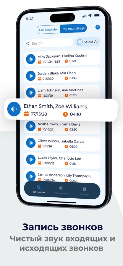 Записывайте входящие и исходящие звонки с высоким качеством звука.