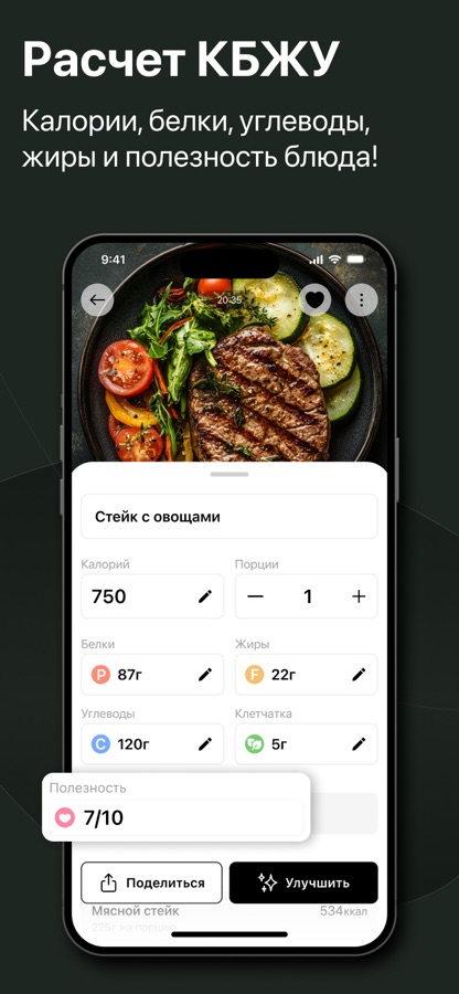 Хочешь тело мечты? Надоело вручную считать калории и взвешивать еду? Просто сфотографируй блюдо, а ИИ всё посчитает за тебя. Легко и без лишних усилий!