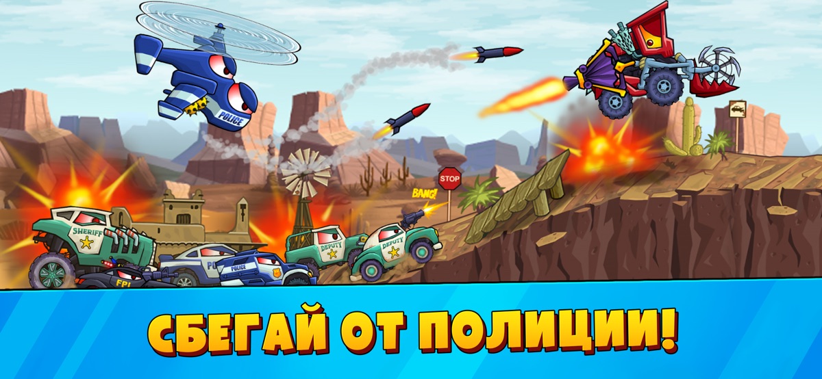 Оторвись от полицейской погони в красочных локациях шумного города, адской пустыни, райского острова! Гонки стрелялки — это игры без правил, мир без запретов и ограничений! Стальные монстр машинки ждут начало гонки по бездорожью! В Car Eats Car 3 турбо скорость и опасность – это смысл жизни!