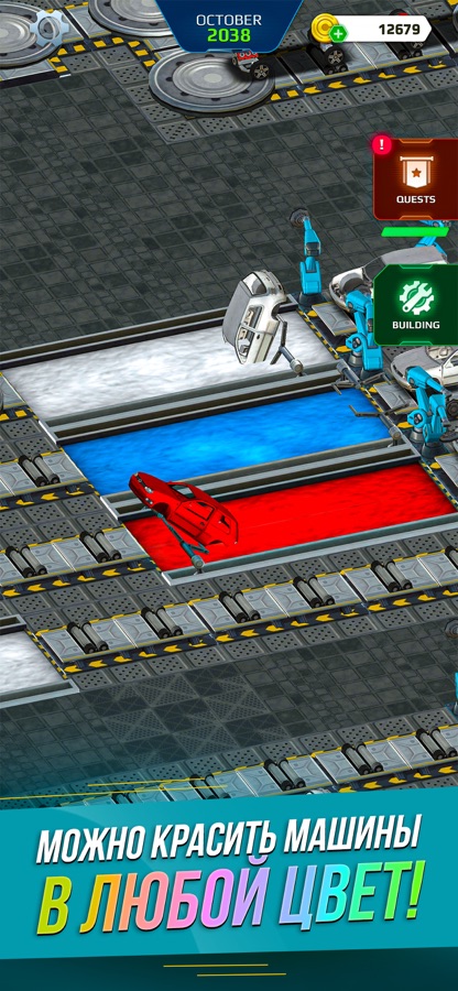 Начинать нужно будет с установки первых цехов — штамповочного и сварочного, на которых будут изготавливаться кузовные детали. Далее кузов нужно будет собрать и покрасить. Кстати, цвет машины вы тоже можете выбрить самостоятельно.