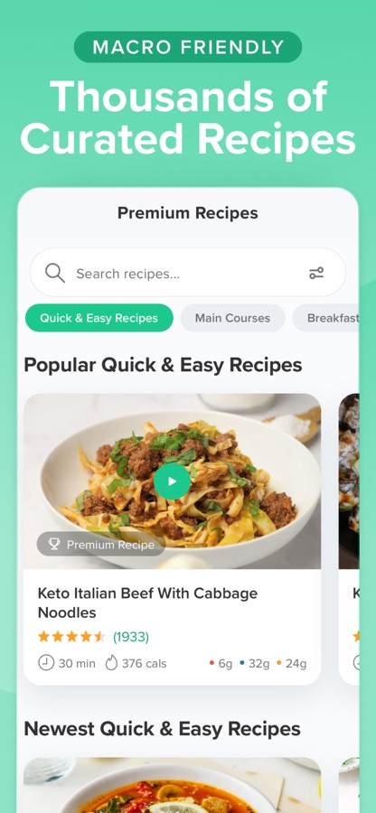 • Nutrition tracker: Search 1M+ foods with our easy macro and Keto carb counter, including net carbs and sugar alcohols