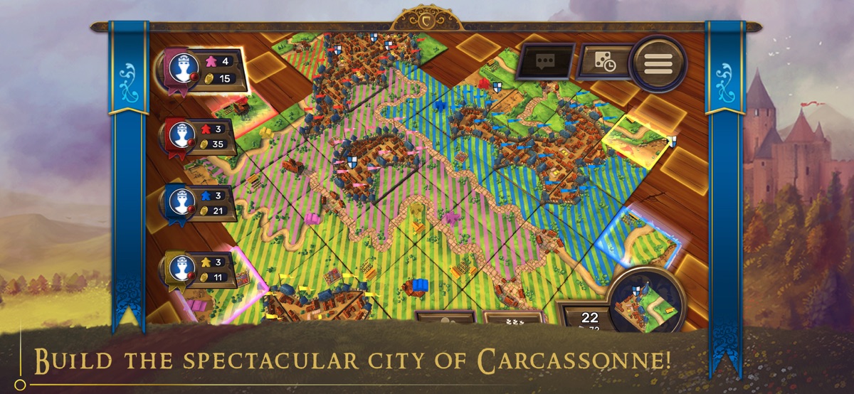 Discover or re-discover Carcassonne, the multi-awarded tile-based game in which players draw and place their tiles to build a medieval city. Place your cities, roads, abbeys or fields to enlarge your landscape, then place your followers, the meeples. Knights, robbers or farmers… Each meeple will help you control your territory and win points.
