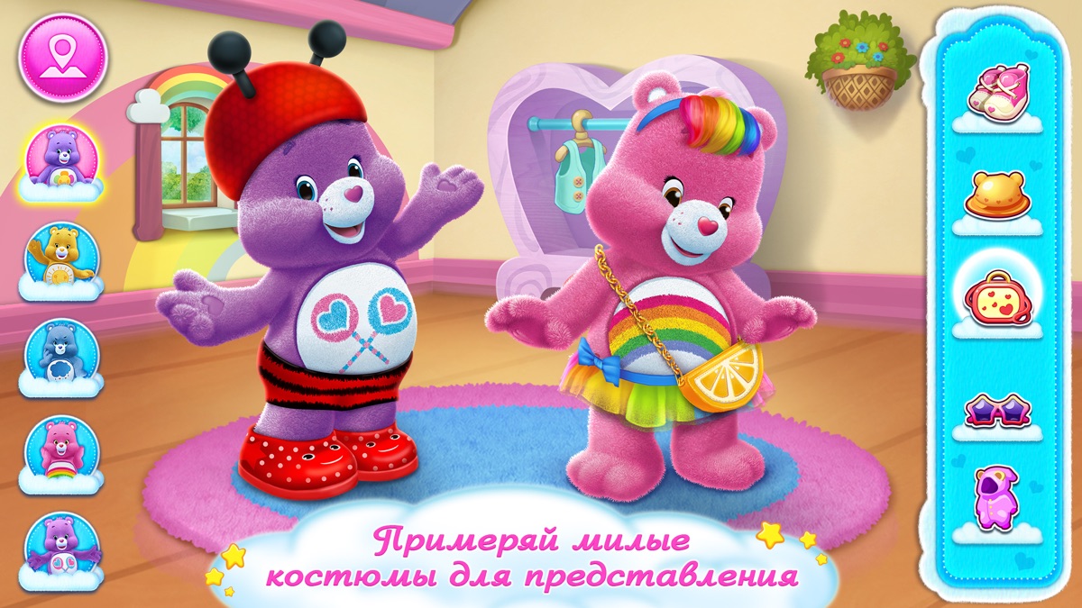 > Примеряй милые разноцветные костюмы с хорошенькими Заботливыми Мишками! Забавные аксессуары и наряды наполнят тебя счастьем.