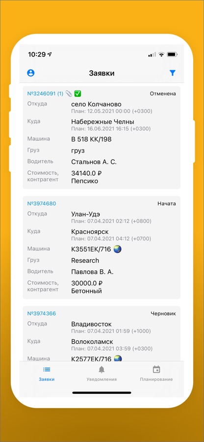 Мобильное приложение «Cargorun Логисты» является дополнением к облачной логистической платформе «Cargo.Run» и предназначено для оперативного уведомления логиста и управления заявками. «Cargorun Логисты» позволяет видеть заявки, уведомления, планирование.