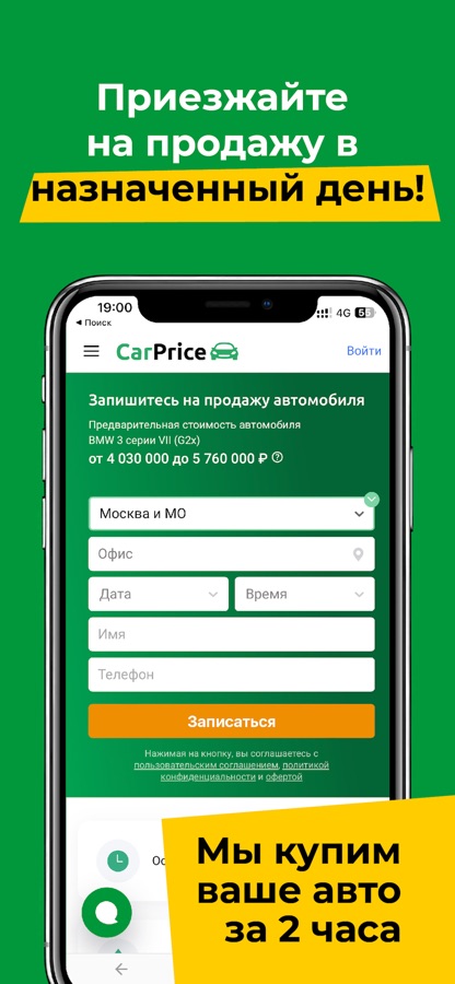 CarPrice – это приложение для быстрой и безопасной продажи автомобиля. Установите приложение на телефон, запишитесь на бесплатный осмотр авто в удобное время в ближайшем офисе компании и продайте свой автомобиль в течение 2 часов.