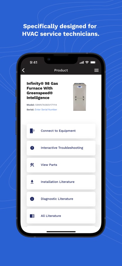 The Carrier Service Technician app provides an easy to use, powerful app that is designed to help the technician standing in front of a unit. The app helps them at the job site to find out what parts they need to make repairs, and it has an on-board GPS to help identify the closest location to find the parts.