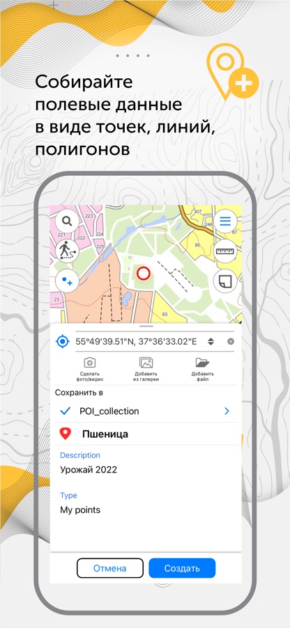 — Создавайте и редактируйте на карте объекты в виде точек, линий и полигонов.