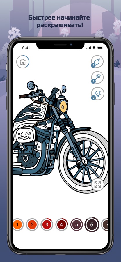 — Следуйте за цифрами и специальной цветовой палитрой, в которой указывается, какой цвет соответствует каждому номеру. Нажмите на цвет, а затем нажмите на область с цифрой, соответствующей выбранному цвету.