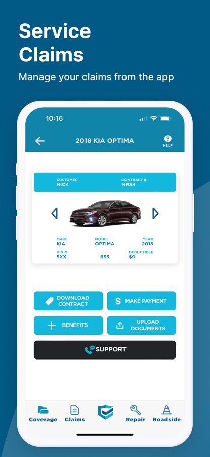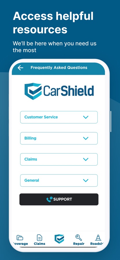CarShield Mobile is designed for contract holders to be able to view details of their contracts through their mobile devices. The application includes information for claims, roadside assistance, and customer service when you need it most.