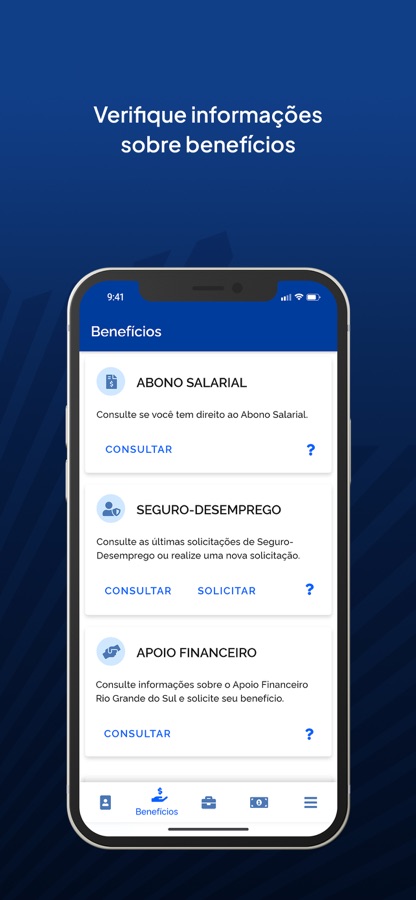 A Carteira de Trabalho Digital permite também solicitar o Seguro-Desemprego, e consultar outros benefícios trabalhistas, como o Abono Salarial, Benefício TAC-Taxista e o Benefício Emergencial.