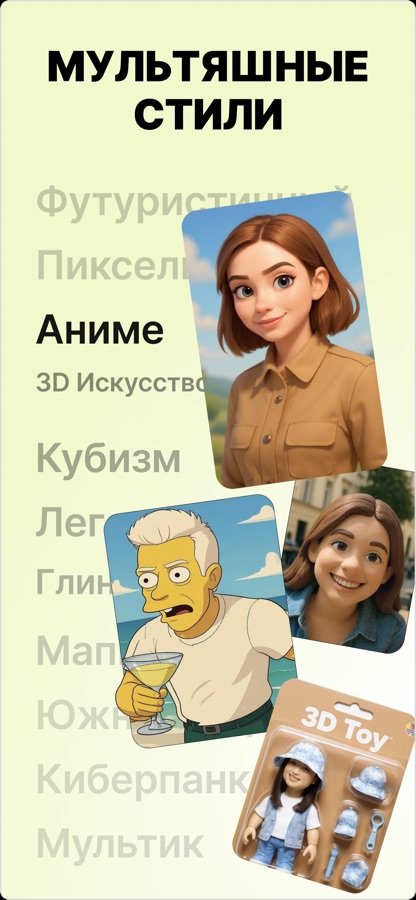 • Десятки уникальных образов: Станьте героем аниме, 3D‑персонажем, ручным скетчем, смелым комикс‑героем или ярким постером в стиле поп‑арт.