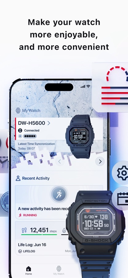 ‐ My Watch: Register your watch to easily check its manual, or use Bluetooth connection to adjust its time settings, set alarms, and implement world time settings