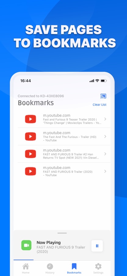 Отправляйте видео любой длины — от трейлеров любимых фильмов до шоу на несколько часов. Добавляйте в очередь воспроизведения ролики с разных сайтов в любом количестве и порядке. Castio упрощает просмотр веб-видео. Вам не нужно устанавливать дополнительные приложения на Chromecast и разбираться в многостраничных руководствах.