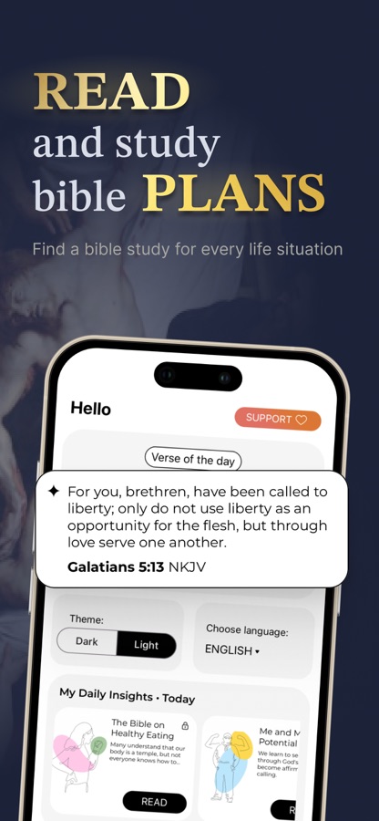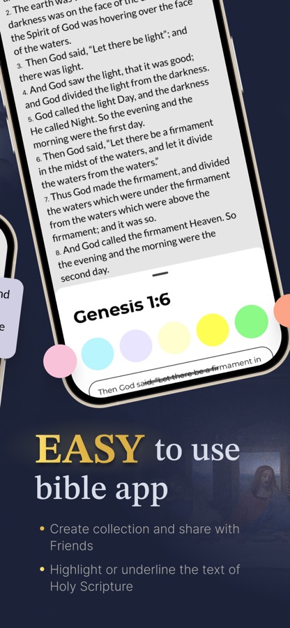 • Генерируйте библейские цитаты на основе личных размышлений и делитесь ими с друзьями.