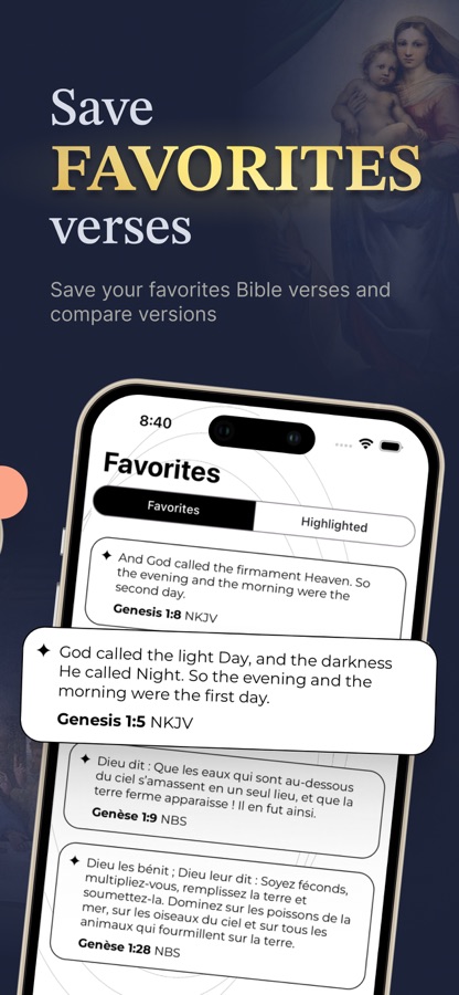 Откройте для себя и сравните более 50 переводов Библии, создавайте личные молитвы, генерируйте библейские цитаты в зависимости от вашего настроения и получайте персонализированные уведомления с библейскими стихами. Самое главное — ежедневно погружайтесь в Священное Писание. Скачайте сегодня!