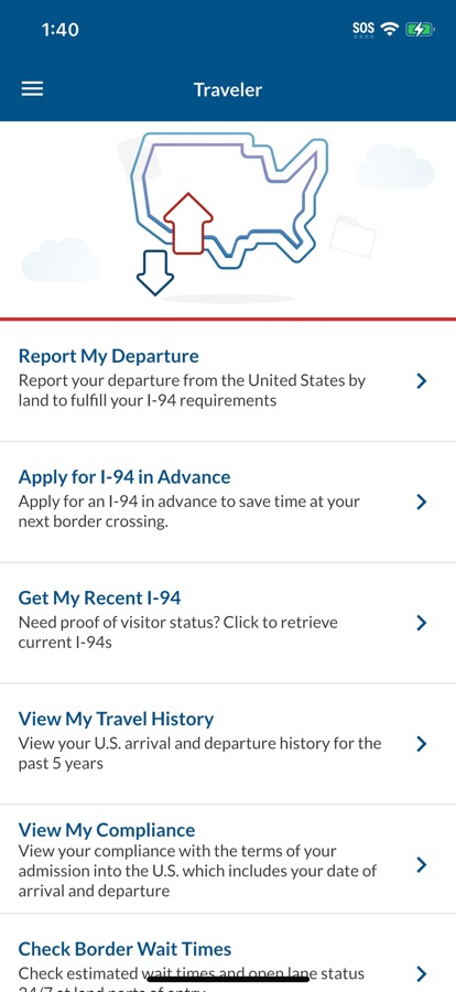 • Apply for a Provisional I-94: The I-94 Entry feature allows travelers to apply for a provisional I-94 prior to arriving at a land border crossing. Travelers who apply for their I-94 ahead of time will experience faster processing times to expedite entry. Travelers can also quickly access their current I-94 submission to view critical information such as, how long they can remain in the U.S., and use it for proof of visitor status once in the United States.