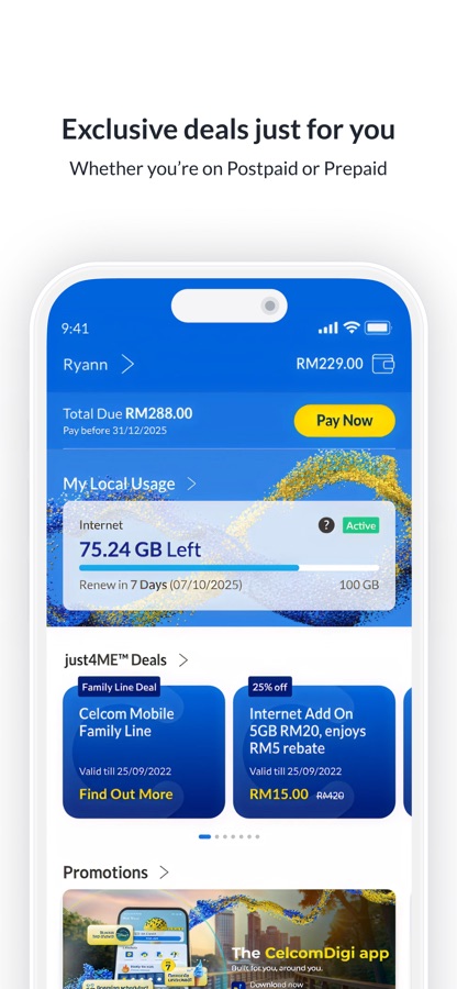 Download Celcom Life to pay bill, reload, check statements, get add-ons, and more on the widest network in town!