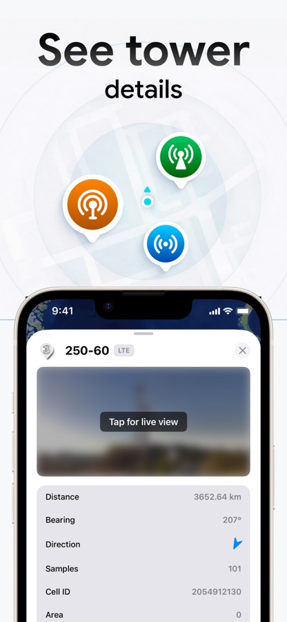 — Просмотр всех ближайших вышек сотовой связи на интуитивно понятном интерфейсе карты