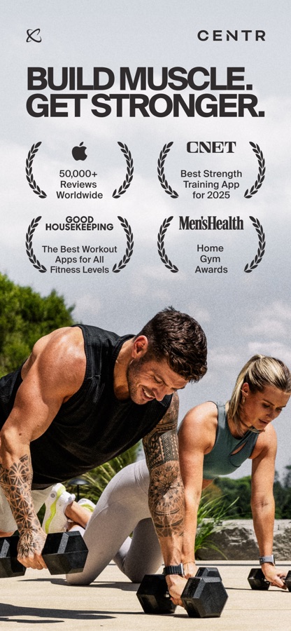 Centr is the all-in-one Strength & Fitness App built to help you reach your goals — whether you train at home or in the gym. Get personalized workout plans based on your goals, preferences, and experience level. Build muscle, get fit, and improve your endurance with programs designed by elite coaches — including the first-ever HYROX-certified training plan.