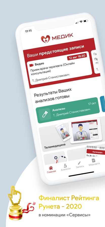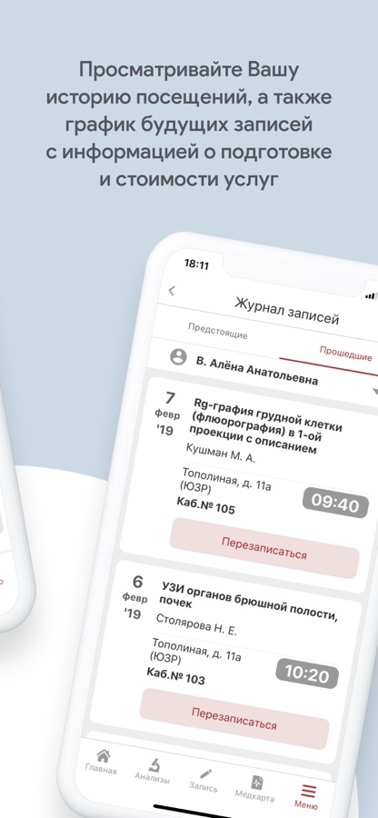 — ваша медицинская карта: протоколы всех пройденных консультаций, исследований, результаты анализов — вся история посещений клиники, к которой вы имеете доступ в любое время и в любом месте;