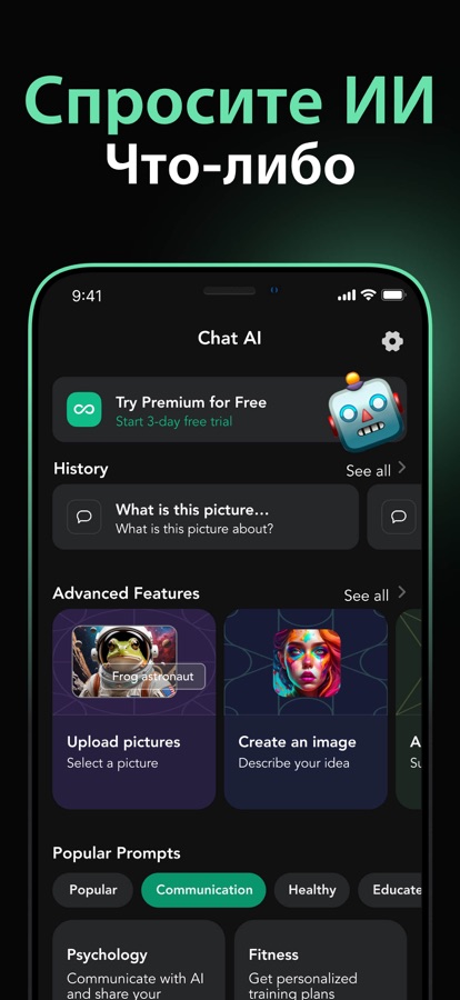 Вам нужна помощь с быстрой задачей? Вы ищете вдумчивый разговор? Или, может быть, вам нужна помощь со сложными проектами? Наше приложение здесь для вас! Сделайте свою жизнь проще и работу эффективнее с помощью расширенных возможностей ИИ на базе GPT-4o и GPT-4.5. Приложение может справиться со всем: от обычных чатов до профессиональной помощи в работе, учебе или личных проектах.