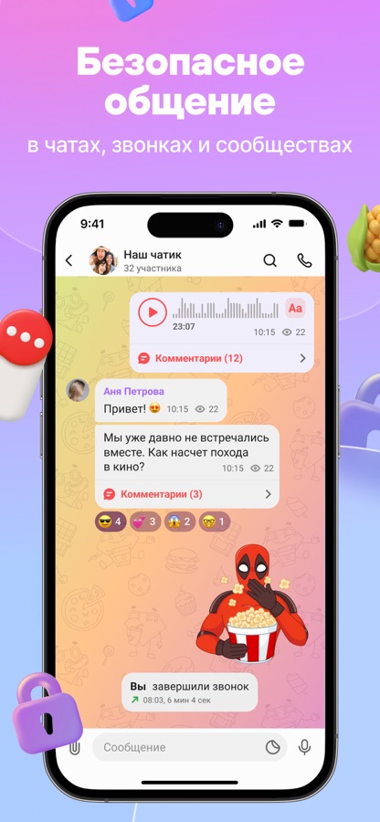 Общайся без ограничений в любых форматах — тексты, стикеры, аудио и видео. Оставайся на связи с близкими в любой точке мира.