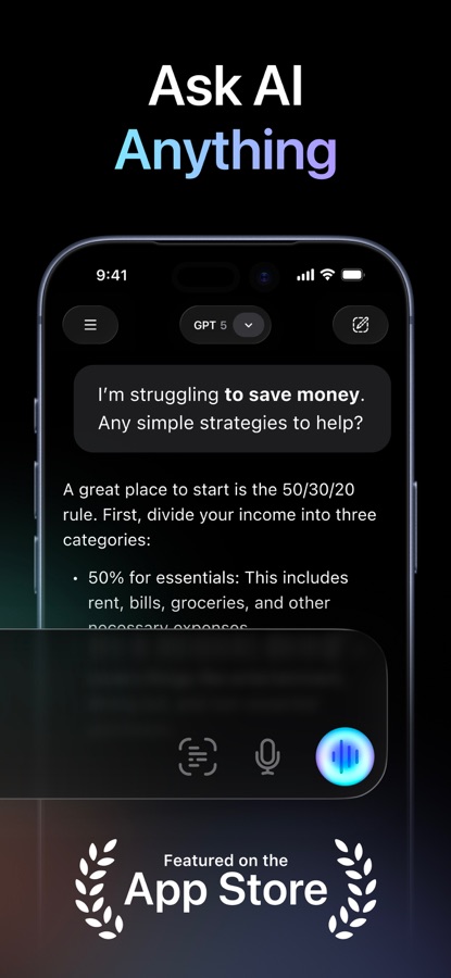 Используй ChatNow так, как удобно: печатай или говори, загружай файлы, вставляй ссылки или просто сделай фото, когда это быстрее. Приложение работает на самых современных моделях: GPT-5 для написания и редактирования текстов, Grok 4 и DeepSeek для поиска и проверки фактов, Claude Opus 4.6 для кода и анализа, Gemini 3.1 Pro для повседневных задач, Veo 3 для генерации видео и Perplexity для ответов из интернета в реальном времени. Всё необходимое под рукой.