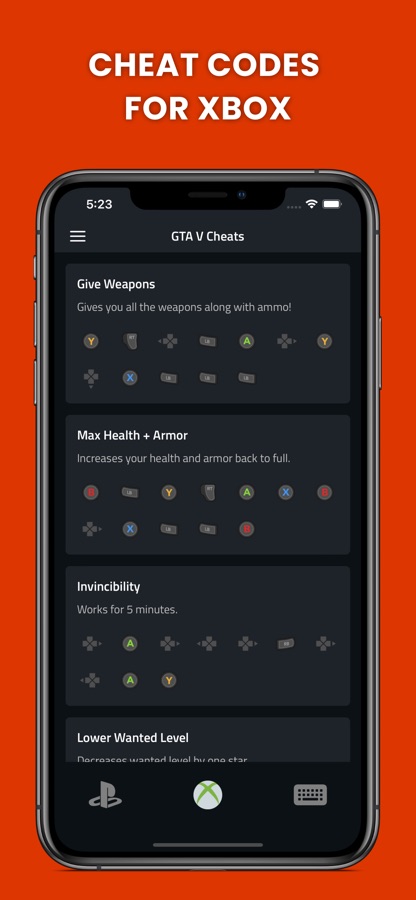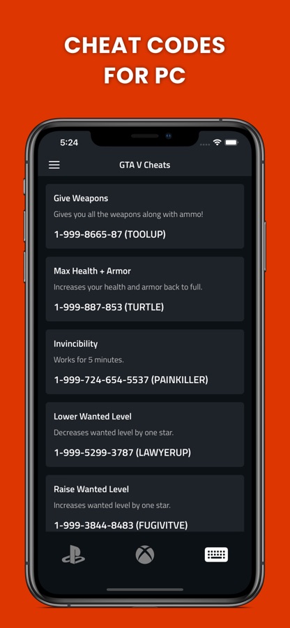 Скачайте приложение Чит коды для ГТА 5 (PS,XBOX) для iOS бесплатно - последняя версия (1.0.6) уже доступна для установки на ваш iPhone или iPad.