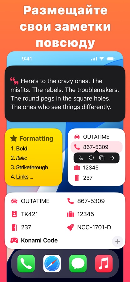 • Настраиваемые виджеты, через которые можно выводить заметки прямо на домашний экран.
