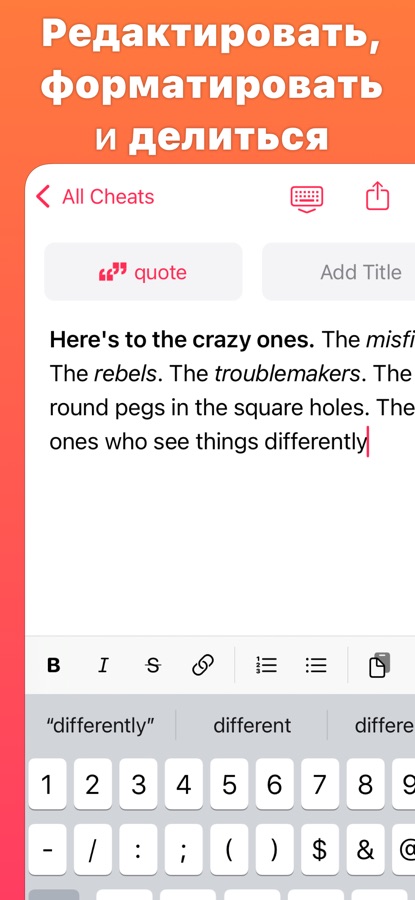 • Клавиатура Cheatsheet позволяет вставлять заметки в любое приложение.