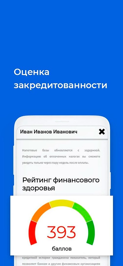• Скоринговый балл кредитного здоровья;
