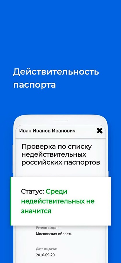 Сервис предлагает услуги проверки физических лиц по паспорту.