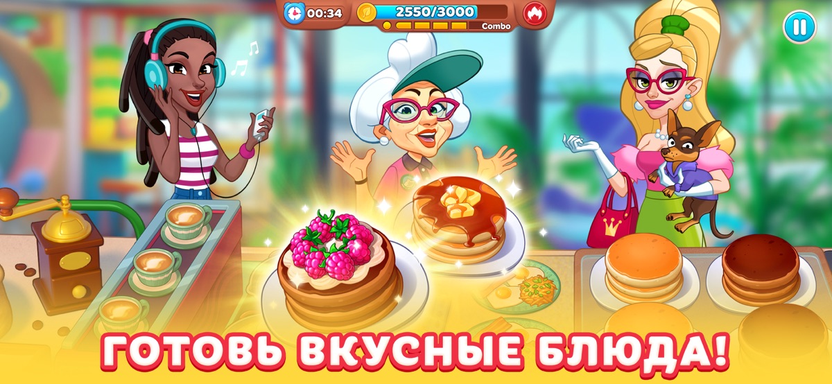 — Кулинарное безумие на игровых уровнях: играйте, готовя вкуснейшие блюда разных кухонь мира;