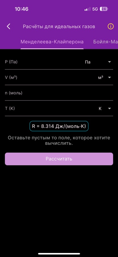 — автоматическое преобразование единиц (Па, атм, мм рт. ст., л, мл, K, °C)