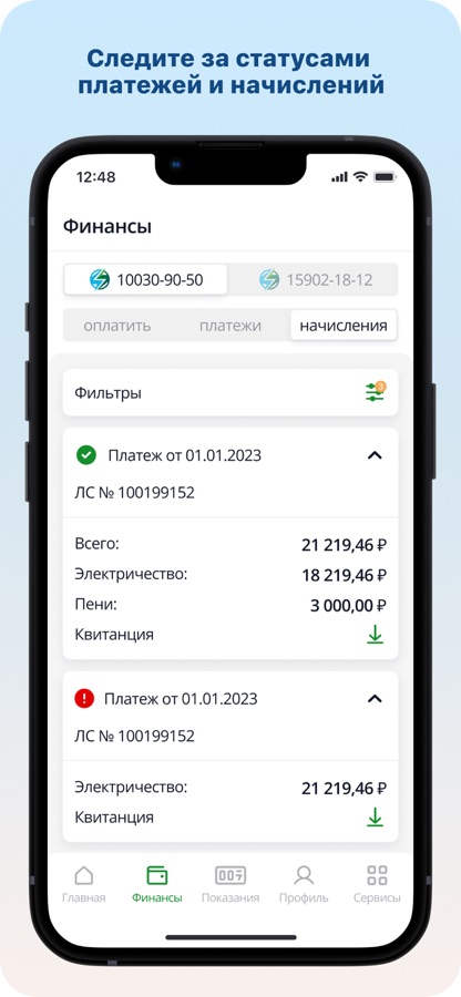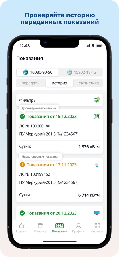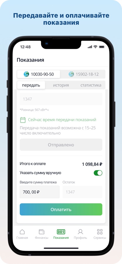 Мобильное приложение предоставляет доступ потребителю к личной информации по лицевому счету, в том числе к следующим данным: