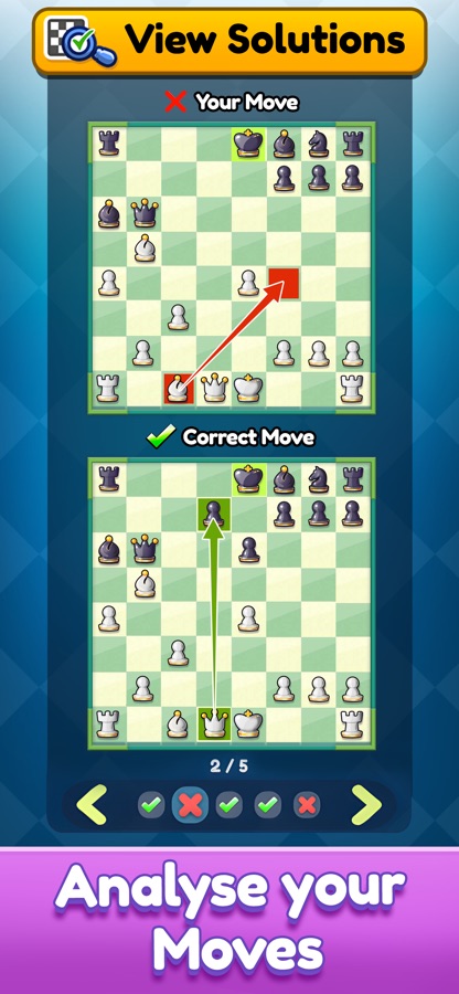 Chess blitz lets you analyze your puzzle and view solutions. You can dive deep into your tactics and pinpoint exactly where you fumbled. And the best part? You get to learn some pretty clever strategies in the process!