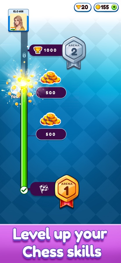 Chess Blitz allows you to learn and understand various chess tactics, & strategies, all while engaging in captivating gameplay. Unlock new levels in the battle arena, earn daily rewards & watch your chess level ascend!