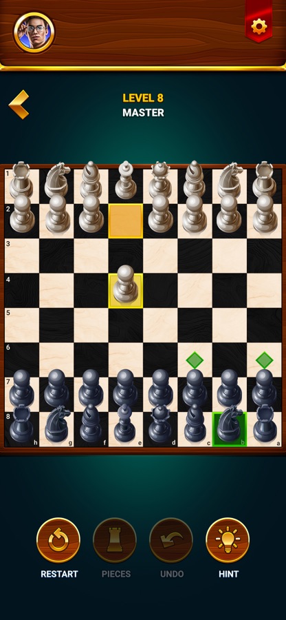 — Вы хотите освоить шахматы или вам нужна помощь в игре? Используйте функцию подсказки, чтобы увидеть лучший возможный ход