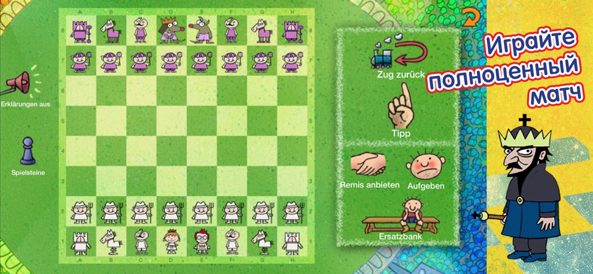 Созданная в виде сказки наполненной веселыми диалогами и чередующимися мини играми, данная дидактическая программа является эталоном среди обучающих программ. Она подойдет, как для ребенка, который еще никогда не сталкивался с шахматами, так и для тех, кто уже знает правила и делает первые шаги.