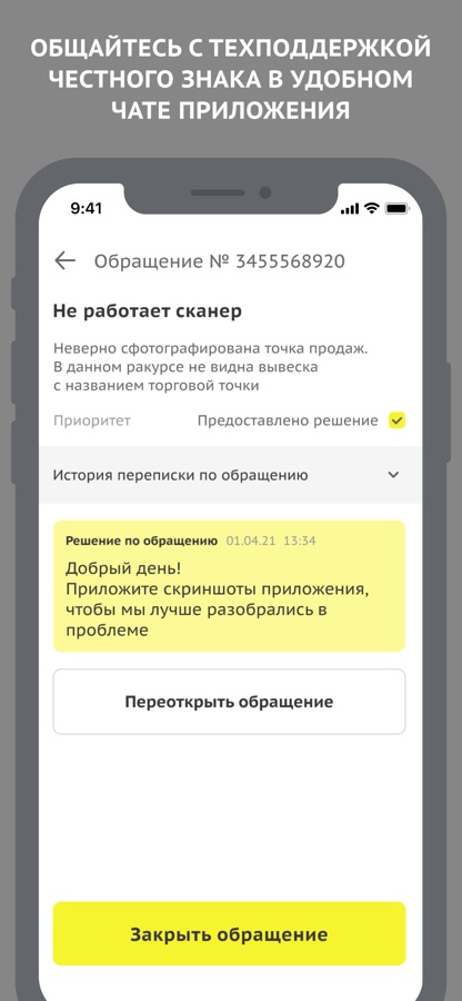 • Общайтесь с техподдержкой Честного ЗНАКа в удобном чате приложения