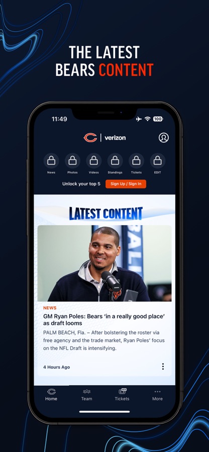 — Bears Stories that enable you to follow the team in a familiar, social media-like layout