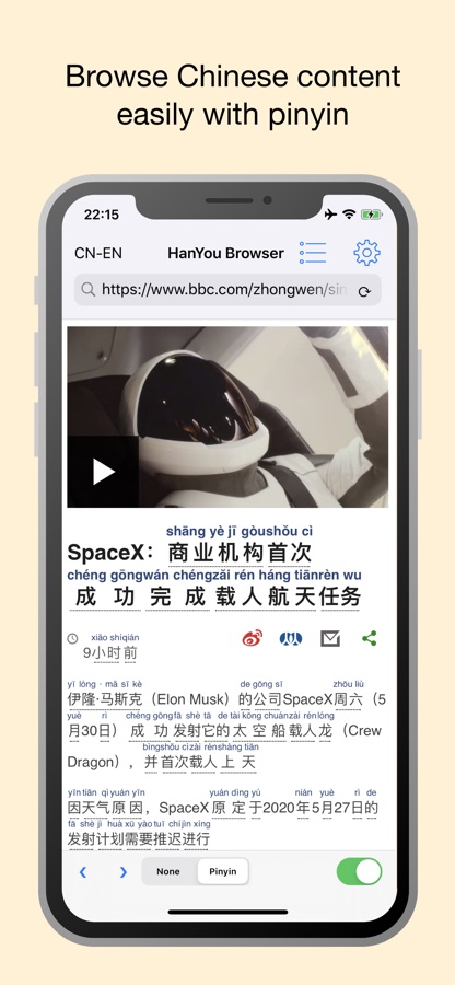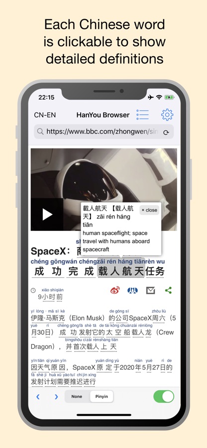 Chinese Browser by HanYou lets Chinese learners and expats browse websites and see pinyin and definitions by tapping on characters