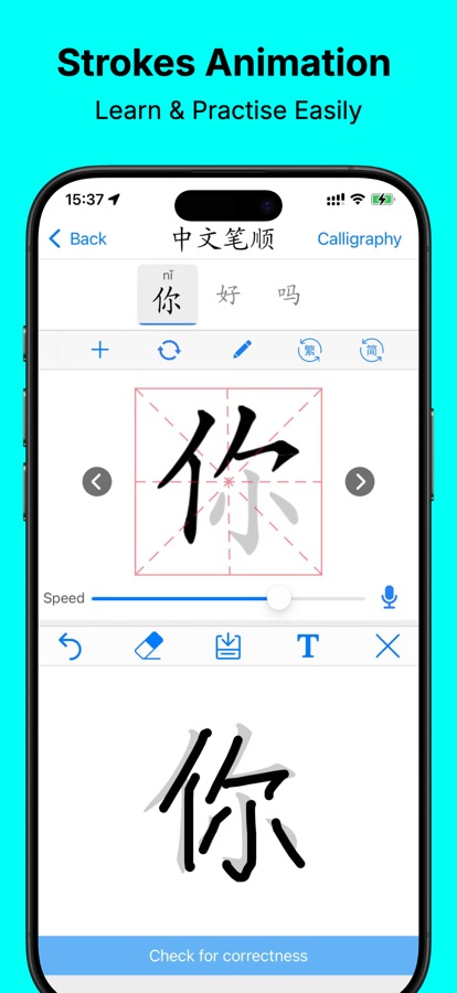 You can easily change the stroke speed in the app’s settings if you find it hard to keep up, as well. It helps a lot for calligraphy and visualize stroke order.
