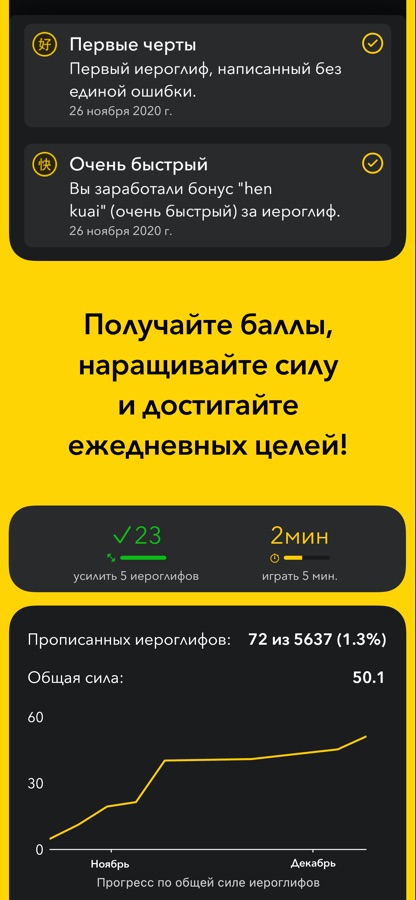 • Приложение запоминает, с какими иероглифами у вас были проблемы, и делает их приоритетными в будущих играх, а также переносит их в начало списка на вкладке «Пакеты».